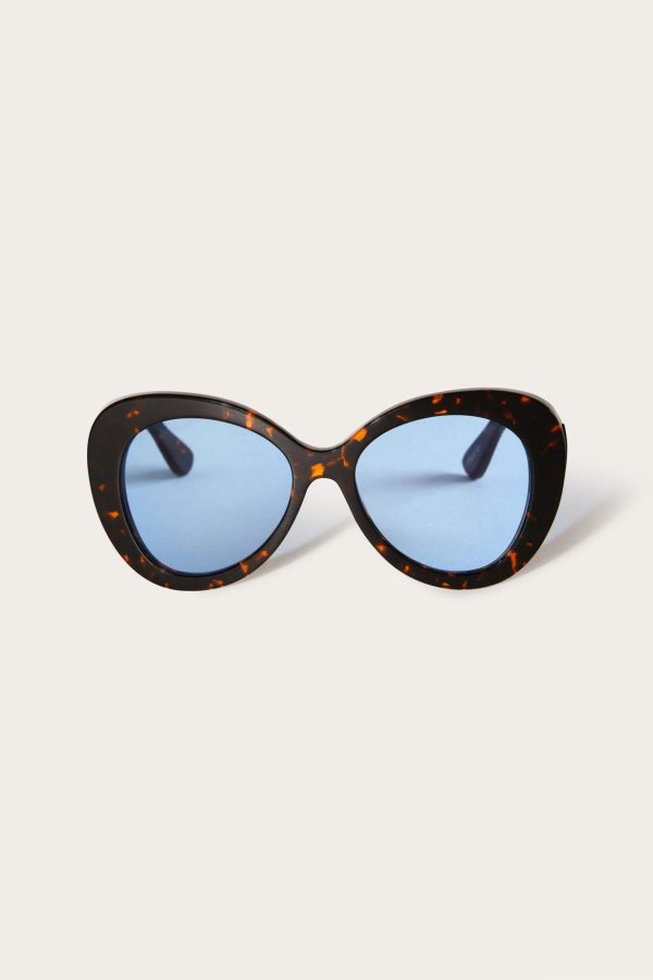 Crafted from glossy acetate to a wide butterfly shape, these tortoiseshell-effect sunglasses embody Pucci’s maximalist mood. A thicker front and blue tinted lenses add depth to the design, while logo lettering on the sides lends a hallmark touch.