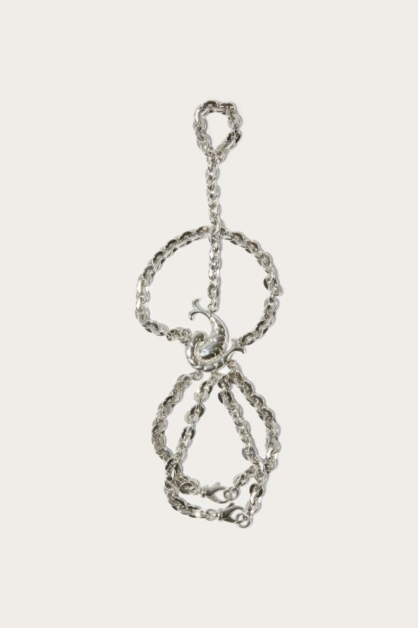 Tapping into punk’s unapologetically bold attitude, Camille Miceli offers this gleaming silver-tone glove. It centres on the Pucci P, formed by intertwined fish, with multiple chains extending out across the wrist and hand.
