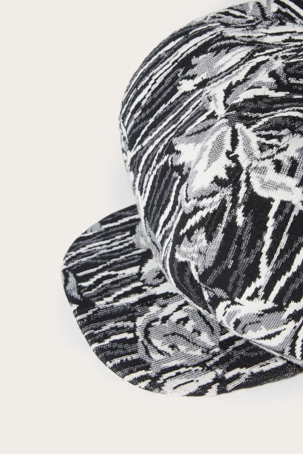 Pucci reworks the humble baker cap in voluminous proportions. Made from tactile jacquard that’s woven with the Fiori Di Loto motif, it has an exaggerated crown and flat peak. Note a signature intertwined-fish plaque at the side.