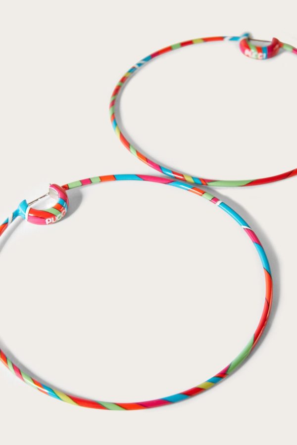 Pucci’s high-spirited aesthetic takes form in these oversized hoop earrings. Wrapped in the iconic Iride print, they feature a small inner hoop detailed with the house moniker.