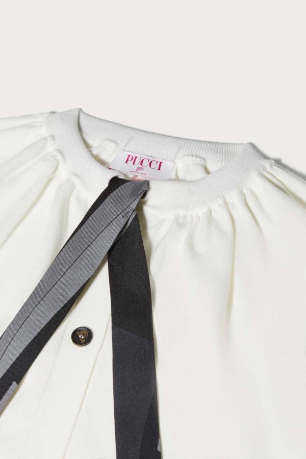 A new knitwear capsule collection designed by Camille Miceli. Each garment is embellished with a colorful silk-twill in Iride print