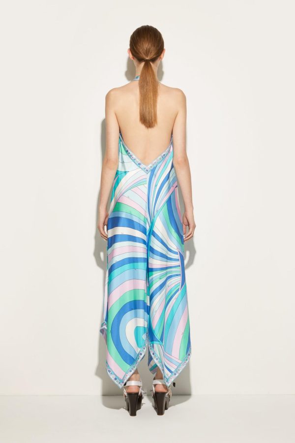 Pucci’s Iride print – a bold motif inspired by the eye’s iris – is the undisputed star of this dress. It decorates the simple silk-twill silhouette with lively shades of blue reminiscent of the colours found in the Mediterranean.