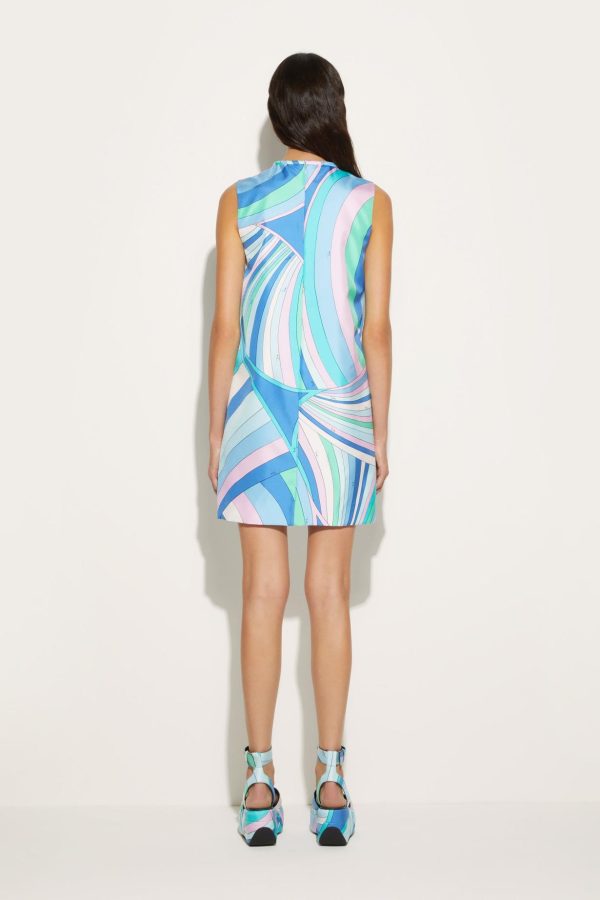 The abstract shapes that combine to create Pucci’s archival Iride print are inspired by the eye’s iris. They add striking colour to this mini dress, which is cut from silk twill to a shift silhouette that evokes the spirit of the 60s.