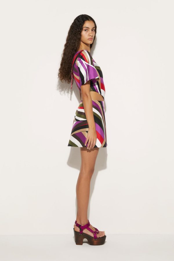 Imbued with Pucci’s exuberant spirit, this skirt is awash with the psychedelic stripes of the Iride print. It’s cut from silk-twill to a wrap design.