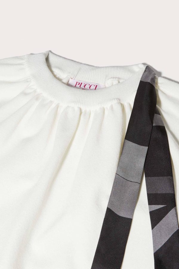 A new knitwear capsule collection designed by Camille Miceli. Each garment is embellished with a colorful silk-twill in Iride print