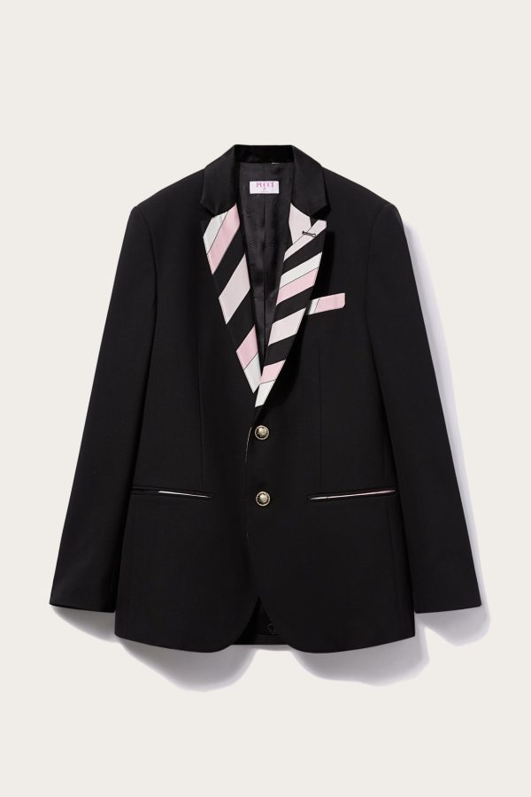 Camille Miceli elevates this blazer with Pucci flair: the notch lapels are decorated with the bold Iride print. It’s cut to a classic single-breasted silhouette and is complete with Marmo-engraved buttons at the front.