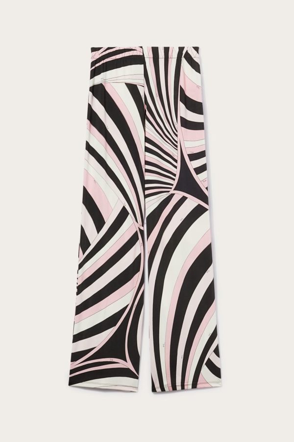 These trousers embody Pucci’s bold maximalism: they’re decorated with the bold Iride print, which draws inspiration from the intricate patterns of the iris. They fall from an elasticated waistband to a straight-leg silhouette.