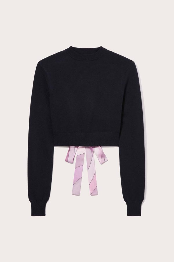 A new knitwear capsule collection designed by Camille Miceli. Each garment is embellished with a colorful silk-twill in Iride print