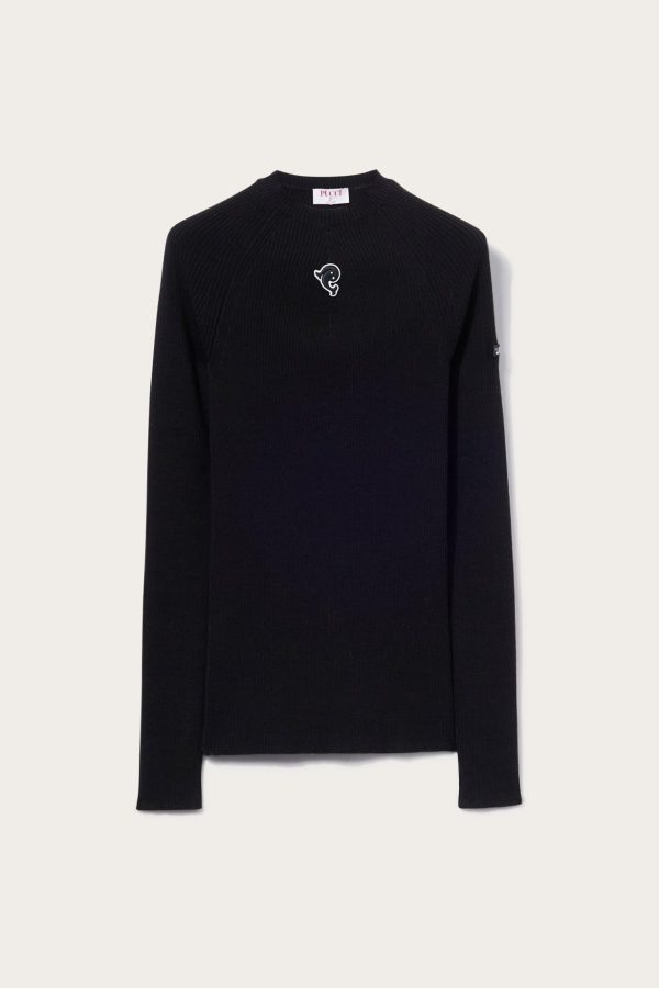 The hallmark intertwined fish motif puts a signature twist on this ribbed-knit sweater, which is crafted to a slim silhouette and finished with an embroidered logo patch at the sleeve.