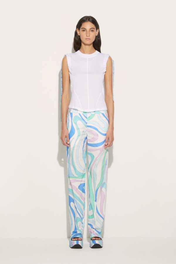 A casual take on classic tailoring, these trousers capture Pucci’s bold approach to pattern: they’re enveloped in the Marmo print, which is inspired by the swirling lines found on marble. The pressed creases define the relaxed silhouette.