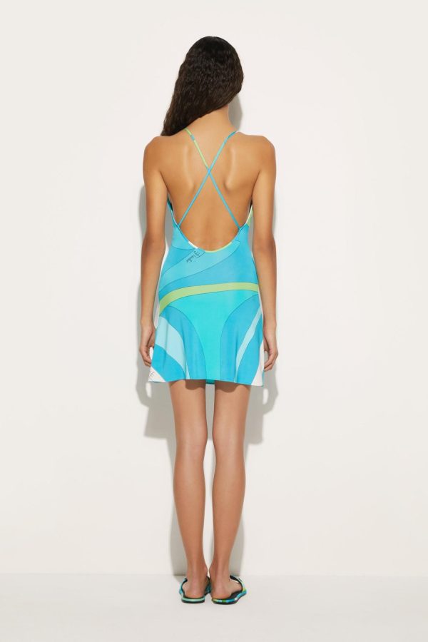 Camille Miceli wraps this mini dress in the watery ripples of the Marmo print. The fluid silhouette drapes at the neck and flows to a curved mini-length hem.