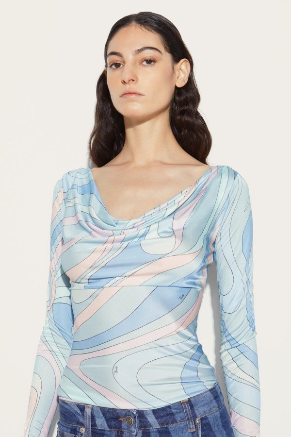 The marble-inspired Marmo print covers this top in sinuous curves and soft colours. Crafted from fluid jersey, it’s cut with a wide cowl neck and long sleeves.