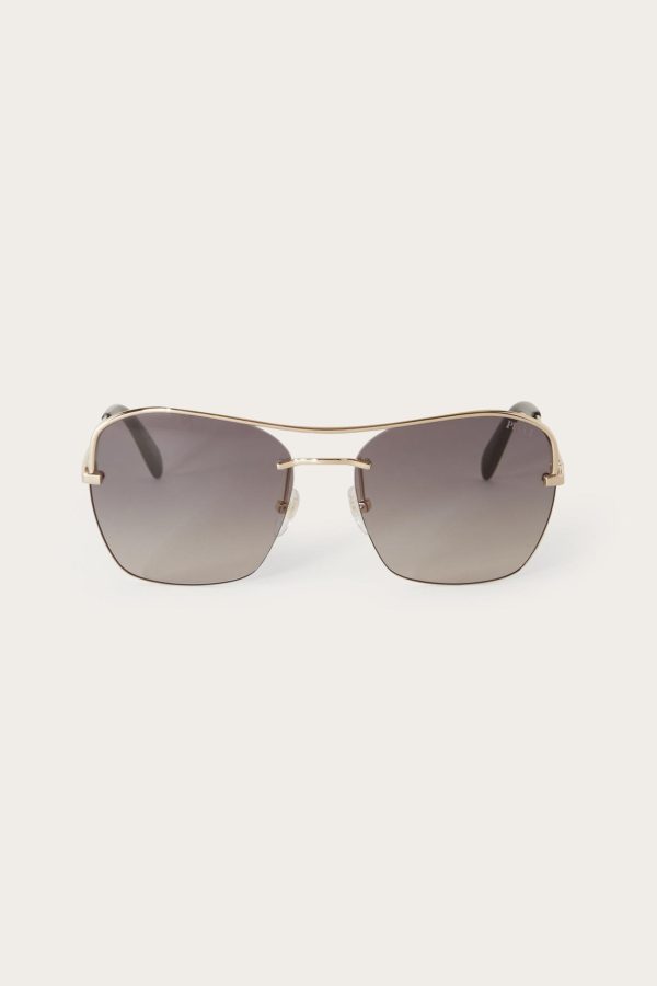 Showcasing a curved metal brow bar and rimless square lenses, these gradient sunglasses highlight Pucci’s directional approach to design. Note the logo at the temple.