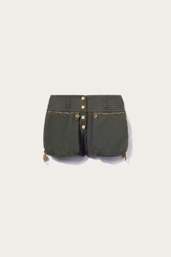 These shorts are Pucci’s riff on cargo styles: they’re fitted with a wide quilted waistband and fitted with multiple pockets. The intertwining fish logo – introduced by Camille Miceli – tips the zips and adds a touch of branding.