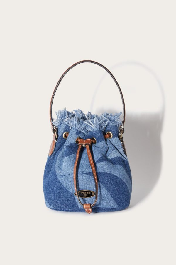 Pucci’s archival Marmo print imparts rippling waves on this bucket bag. It’s crafted from stretch-cotton denim with smooth leather trims and is finished with a logo plaque at the front.
